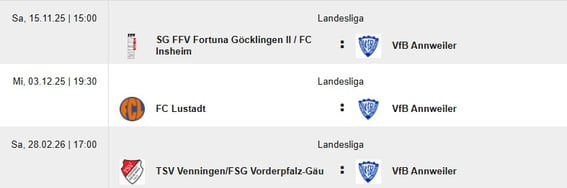 Bei Interesse, einfach auf den Link klicken, Sie werden weitergeleitet.nm Unter dem Link VfB 1919 Annweiler stehen alle Mannschaften, die unter VfB Annweiler laufen, ebenfalls Hallenturniere und Termine